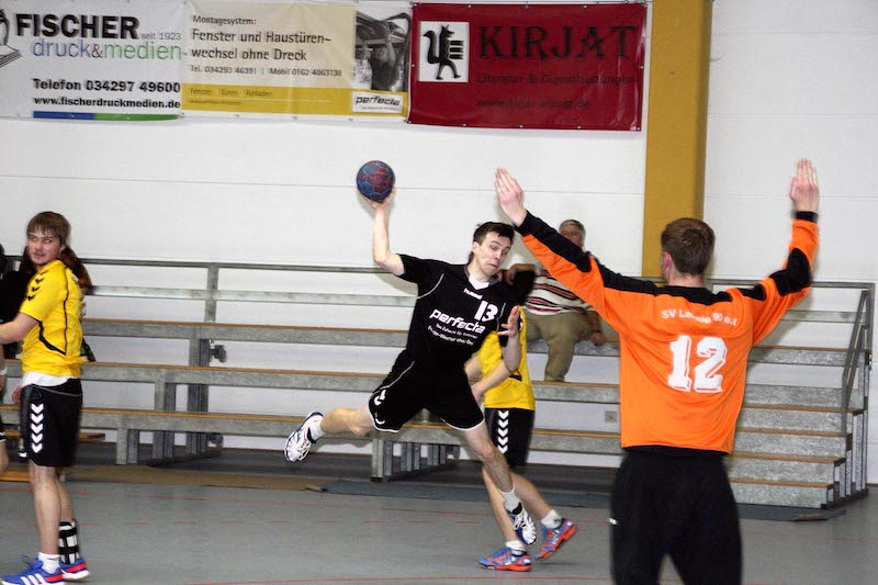 Nach Wiederanpfiff sollten die Gastgeber Ihren Vorsprung auch aufgrund dieses Trumpfes erfolgreich verteidigen. Die kompakte stehende Deckung der Naunhofer, die Gästewürfe aus der zweiten Reihe ein um andere Mal abblockte und ein Zwischenspurt führten sogar dazu, dass die Gastgeber den Halbzeitabstand bis in die Schlussphase verdreifachten (21:15). Dieser Vorsprung war von den Gästen nicht mehr einholbar. Die Naunhofer spielten nun das Spiel konsequent in Sicherheit und gewannen endlich mal wieder ein Heimspiel im Ligabetrieb. Die besten Werfer auf Naunhofer Seite waren Eric Beyer und Tobias Gierke mit jeweils 5 Treffern. Am kommenden Samstag erwarten die Naunhofer zum vorerst letzten Heimspiel die Mannschaft des VfB Torgau. Auch in diesem Spiel sollte ein Sieg erreicht werden, hoffentlich mit viel Unterstützung zahlreicher Zuschauer, um einen positiven Heimspielabschluss zu erzielen.