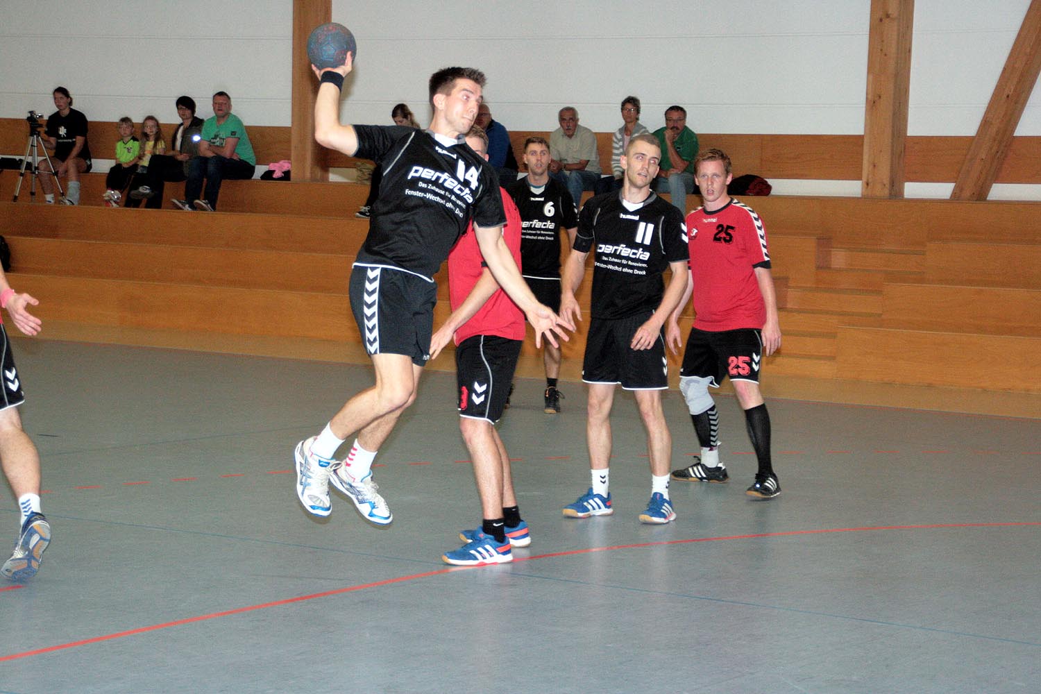 Nach ca. 45 Minuten führten die Gastgeber dementsprechend motiviert mit 24:22. Doch dann begannen die hektischsten 15 Minuten der kompletten Partie. Viele Spielunterbrechungen lösten wieder Zerfahrenheit und Hektik aus und führten dazu, dass die Gäste die letzten Minuten des Spiels immer wieder in Führung gingen und die Gastgeber einem Ausgleich hinterher laufen mussten. Doch davon ließen sie sich nicht zurückwerfen und schlugen stetig zurück. Nach zwei weiteren Disqualifikationen, jeweils eine auf beiden Seiten, kam es zur finalen Entscheidung, in der die Naunhofer in der letzten Minute durch traditionelle Manndeckung und unbedingten Willen einen Zwei-Tore-Rückstand drehten, den Ausgleichstreffer erzielte man 2 Sekunden vor Schluss. Nicht so richtig sicher konnte man sich sein, ob man sich über einen Punktverlust ärgern, oder einen Punktgewinn freuen sollte. Aber man kann festhalten, dass man definitiv auf der gezeigten Leistung aufbauen kann und mindestens dieser eine Punkt, wenn nicht sogar mehr, verdient ist.