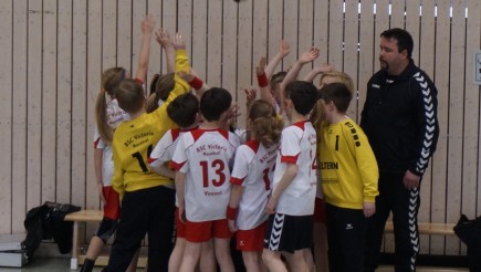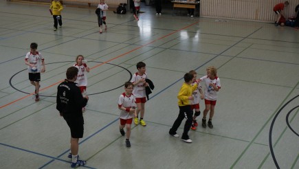 Ballbesitz für die Hummeln. Schneller Sprint und tolle Pässe in Richtung gegnerisches Tor. Ganze 6 Mal ließen es unsere Spieler im Mölkauer Kasten klingeln. Im Gegenzug stand aber unsere Abwehr souverän. Immer wieder wurde sich der Ballbesitz erkämpft. Jede Bewegung der Haie in Richtung Naunhofer Tor wurde durch sichere Abwehrleistung und sehr gute Torhüterleistungen gestört. Im großen Jubel der Zuschauer, ging der Timeoutton fast unter. Nochmal verschnaufen, Kraft und Luft tanken und weitermachen. Natürlich wollte Mölkau das Spiel in den nun folgenden letzten 10 Minuten noch drehen. Mit schönen Spielzügen und dem einen oder anderen Konter kamen die gegnerischen Spieler auch bis auf 12:12 und 13:13 ran. Nur wollten die Hummeln das nicht so stehen lassen. Die Spielerbank feuerte ihre Kameraden auf dem Spielfeld nun noch mehr an. Jeder Spielzug in den sehr kriminellen letzten 2 Spielminuten verhinderten sie den Führungstreffer für Mölkau und landeten dafür den eigenen. Der Schlusspfiff kam, ein 14:13 stand für die Hummeln auf der Anzeige und der Jubel brach los. Die Hummeln stürmten auf die Platte, umarmten sich freuten sich unbändig, füreinander und über diesen Sieg. Einen dankbaren Applaus schickten Sie an ihre Eltern, Familien und Freunde. Mit uns Trainern veranstalteten die Hummeln dann noch ein Freudentänzchen. Natürlich fehlte auch das freundliche Abklatschen mit dem Gegner nicht.