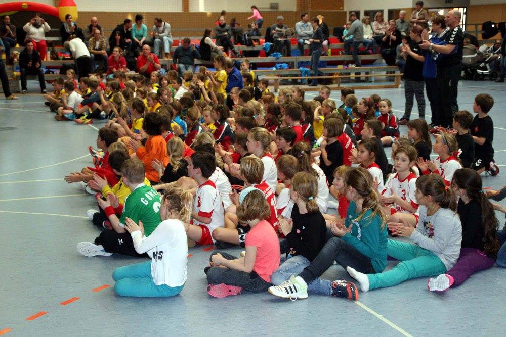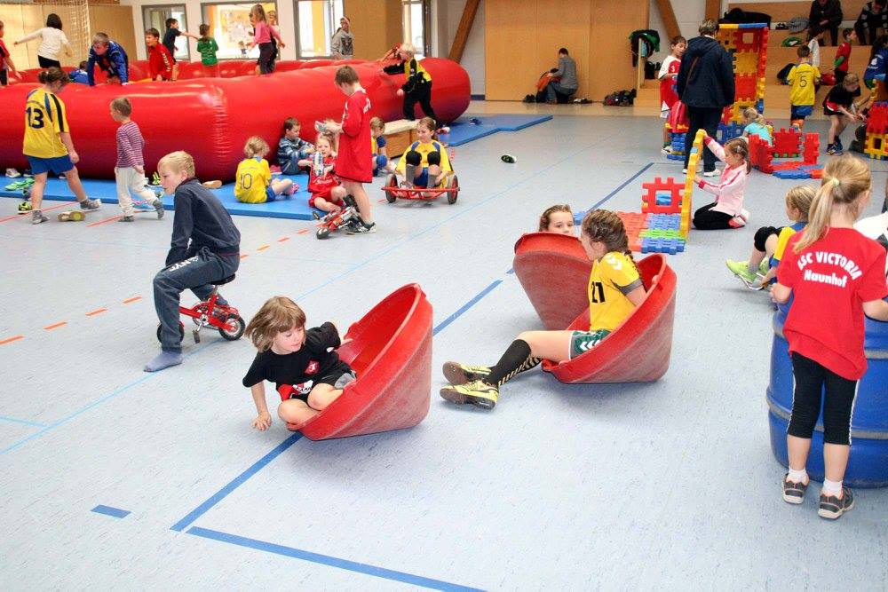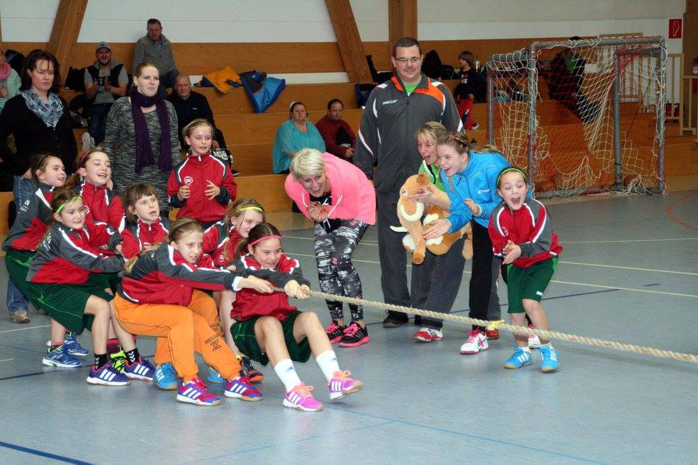 Zum nunmehr 19. Mal lud der BSC Victoria Naunhof sportbegeisterte Kinder zum Jahresabschluss mit Spiel und Sport im Rahmen der Naunhofer Weihnachtspyramide ein. 16 Teams folgten der Einladung und kamen aus Zwickau, Reichardswerben, Bischhofswerda, Mölkau, Taucha, Markranstädt, Naunhof und vom HC Leipzig. Gut 160 aktive Sportler im Alter von 6 – 10 warteten gespannt auf den „Startschuß“ für einen Tag voller Spaß und Sport. Geschwisterkinder, Freunde und Gäste wollten zuschauen, die Spielgeräte austesten und sich auf den Hüpfburgen tummeln; vielleicht sahen wir hier schon Handballnachwuchs zukünftiger Weihnachtspyramiden. Nach den obligatorischen Begrüßungsworten eröffnete erstmalig Eve Möbius das Spielfest mit einem sicher weit in Naunhof zu hörenden „Sport Frei“ und die Kids starteten zur Massenerwärmung mit dem allseits bekannten Spiel „ Feuer- Wasser- Sturm“. Danach begannen auf 2 Spielfeldern die Gruppenspiele der Minimannschaften und der E Jugend Teams. Gestartet wurde wie üblich mit dem Tauziehen, einem eigenständigen Wettbewerb, der immer über den Anwurf entschied. In den darauf folgenden Minihandballspielen mit je 10 Minuten Spieldauer bewies der Handballnachwuchs vor allem die Freude an Sport und Bewegung. Einige waren schon sehr sicher im Kampf um Tore und Punkte, zeigten schönen Spielzüge und sicheres Ballhandling. Anderen sah man an, dass sie sich erstmals im Minihandball versuchten. Entscheidend war der Spaß, den alle im Spiel hatten. Dafür sorgten auch die Naunhofer Schiedsrichter, die hin und wieder ein Auge zudrückten und den Focus auf die Spielfreude rückten. In den Spielpausen konnte auf 2 Hüpfburgen getobt werden. Zahlreiche Fahrgeräte wurden begeistert genauso begeistert ausprobiert wie die Spielgeräte, Vier gewinnt oder die Großpuzzle. Auch das Glücksrad wurde eifrig gedreht und schnell waren die zahlreichen Preise verteilt. Fürs leibliche wohl sorgte Uwe Schneider mit leckeren Nudeln, Soljanka, Würstchen und und und. Einer der Sponsoren, die Bäckerei Wolf begeisterte Groß und Klein mit einer leckeren Torte. Gegen 13 Uhr entschied ein Stechen um die Platzverteilung im Tauziehwettbewerb und die Finalrunden der Minis und der Spieler der E Jungend konnten starten. Hier sah man dann deutlichen Ehrgeiz und große Freude, aber keine Tränen.