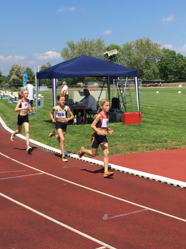 Die Disziplinen Ballweitwurf, 60m Hürden, Weitsprung, 50m und 800m waren nacheinander zu absolvieren. Nach dem Ballwurf gelang es Amelie, Nina und Luise im Weitsprung eine persönliche Bestleistung aufzustellen. Nina schaffte dabei mit 3,92m sogar fast einen 4m-Sprung. Anschließend kamen die drei BSC-Athletinnen gut durch den Hürdenwald und 50m Sprint. Auf beiden Strecken hatte Nina die zweitbesten Ergebnisse des Starterfeldes zu verbuchen (60m Hürden 11,77s und 50m 8,05s). Abschließend mussten alle noch vorhandenen Kräfte für den 800m Lauf mobilisiert werden. Mit hohem Anfangstempo führte Luise in ihrer Lieblingsdisziplin das Feld an und gab selbst im harten Kopf-an Kopf- Endspurt die Führungsposition nicht mehr her. Um 5 Sekunden verbesserte sie ihre eine Woche zuvor gelaufene Bestzeit auf 2:54,50 min.