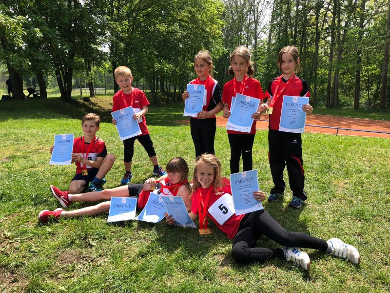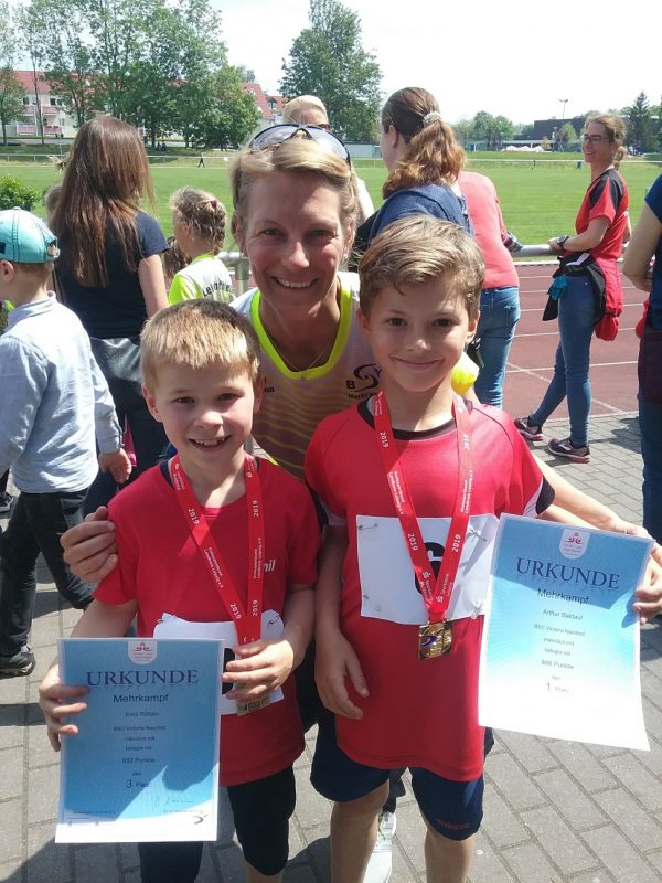 Was diese guten Einzelleistungen in der Dreikampfwertung dann wert sind, zeigt sich erst durch die Addition der Punkte aller Disziplinen. Einen sehr ausgeglichenen Dreikampf zeigten Emil Rößler (M8) und die jüngste BSC-Starterin Matilda Seifert (W7).  Matilda durfte sich in ihrem zweiten Leichtathletikwettkampf über die Silbermedaille im Dreikampf freuen und Emil über Bronze. Arthur Baldauf gelang mit 866 Punkten der Gesamtsieg in der M9. Ihren Doppelerfolg vom Vorjahr wiederholten Julia Krupp und Juliana Brauneck. Jedoch tauschten beide die Platzierungen, so dass Juliana in diesem Jahr das oberste Treppchen betreten durfte.