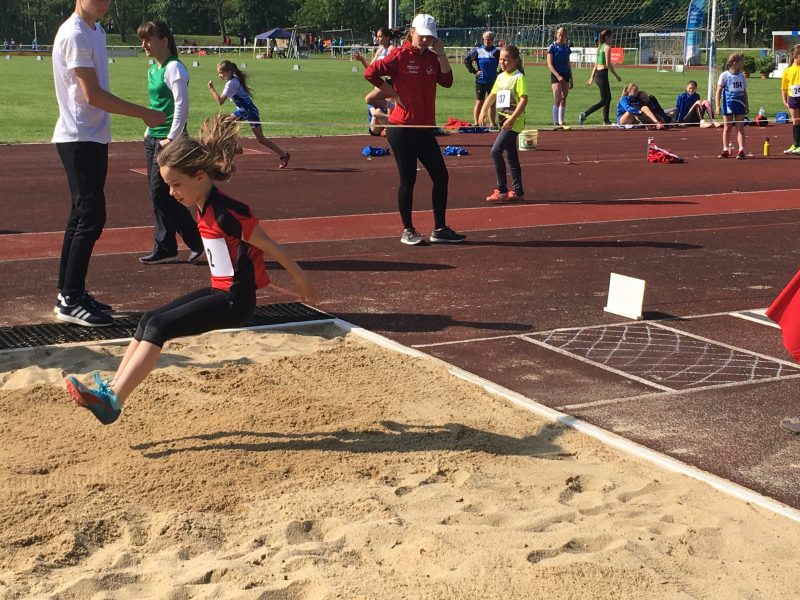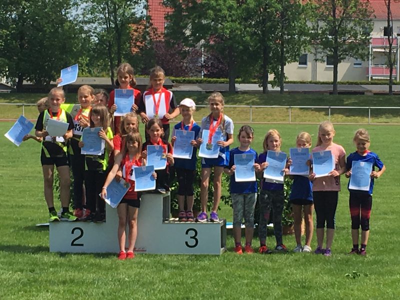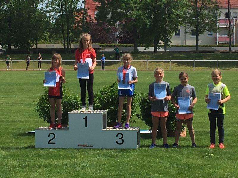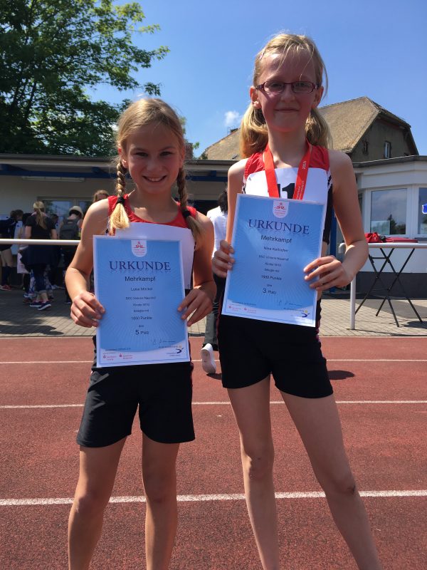 Amelie erreichte mit 1646 Punkten einen sehr guten achten Platz. Luise wurde mit 1850 Punkten Fünfte der Gesamtwertung und Nina durfte sich mit erzielten 1988 Punkten über die Bronzemedaille freuen. Damit erfüllten Nina und Luise sogar die Landeskadernorm im Fünfkampf für diese Altersklasse. Beide werden am 01.06. den BSC bei den Regionalmeisterschaften im Mehrkampf in Eilenburg vertreten.
