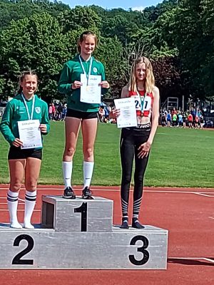 Nina dominierte an diesem Tag mit neuer persönlicher Bestleistung von 41,00m im Ballweitwurf die Konkurrenz. Die zweitbeste Leistung im Weitsprung mit 4,43m und viertbeste Zeit über 800m im Starterfeld brachten ordentlich Punkte. Am Ende des Fünfkampfes standen bei Nina 2327 Punkte im Protokoll. Damit belegte Nina Platz 3 und konnte bei der Siegerehrung voller Stolz die Bronzemedaille in Empfang nehmen.